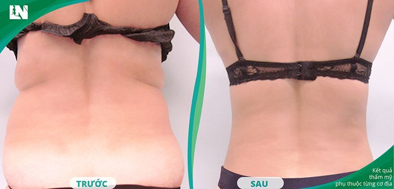 Hình ảnh thực tế khách hàng trước – sau khi thực hiện hút mỡ lưng tại ekip Bác sĩ Lương Ngọc